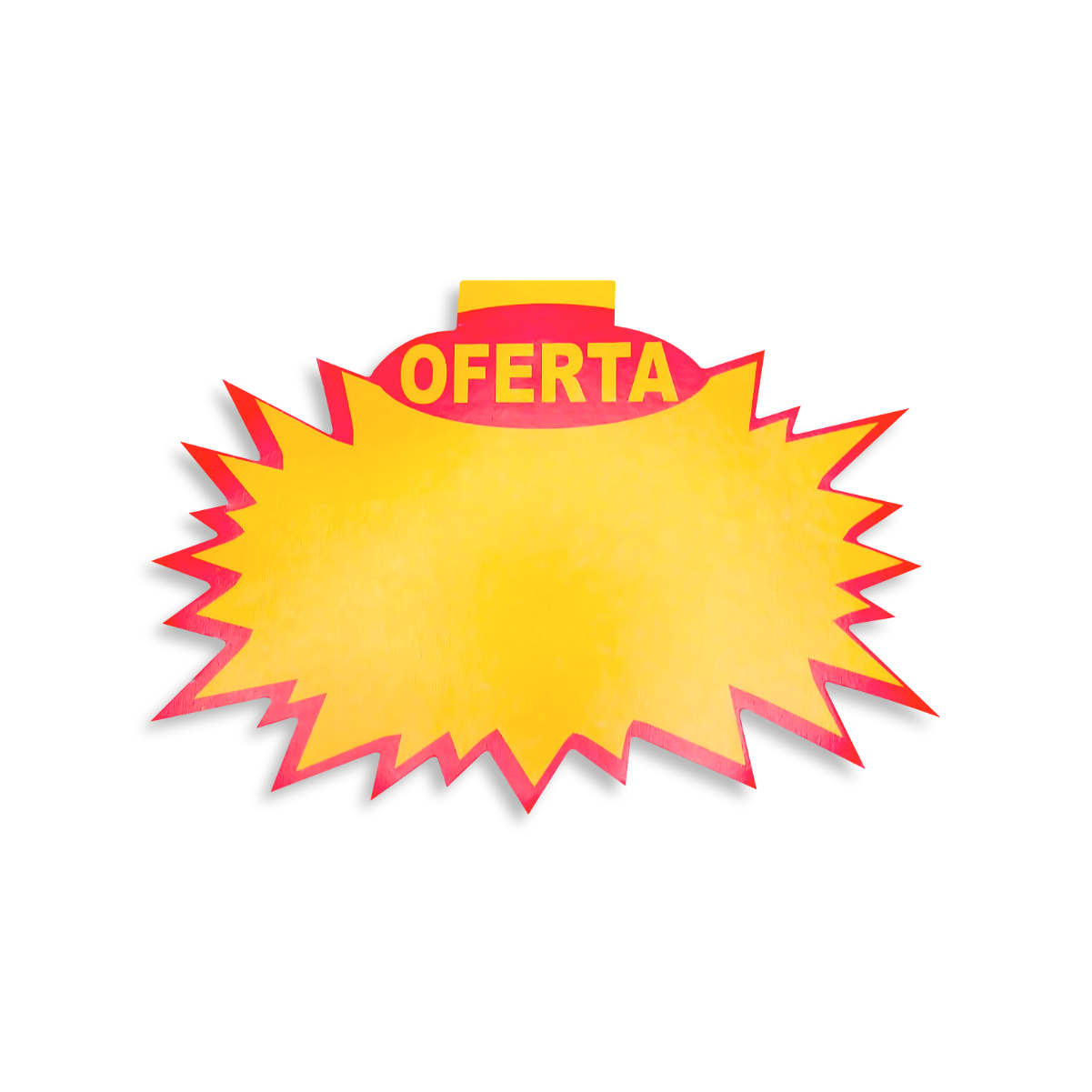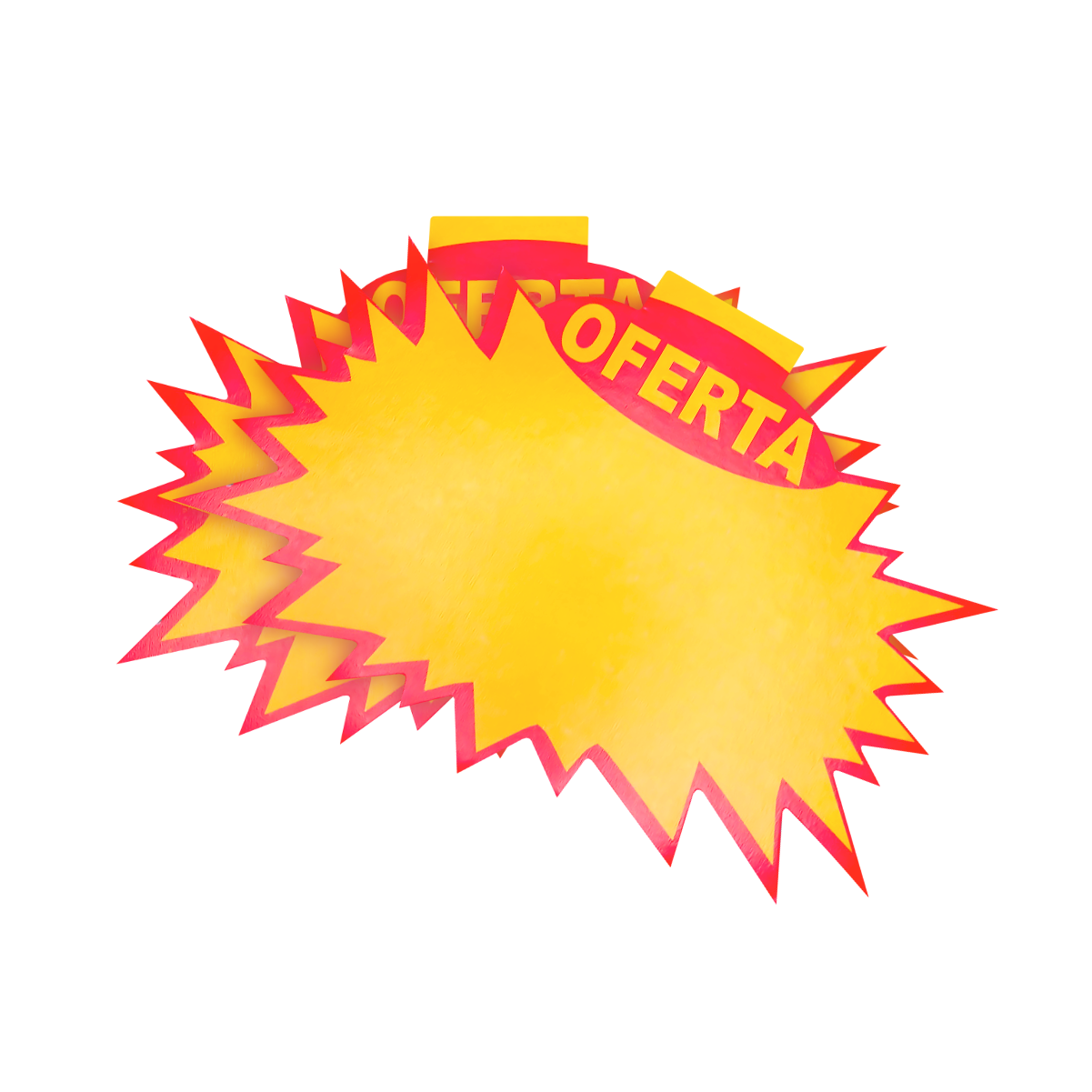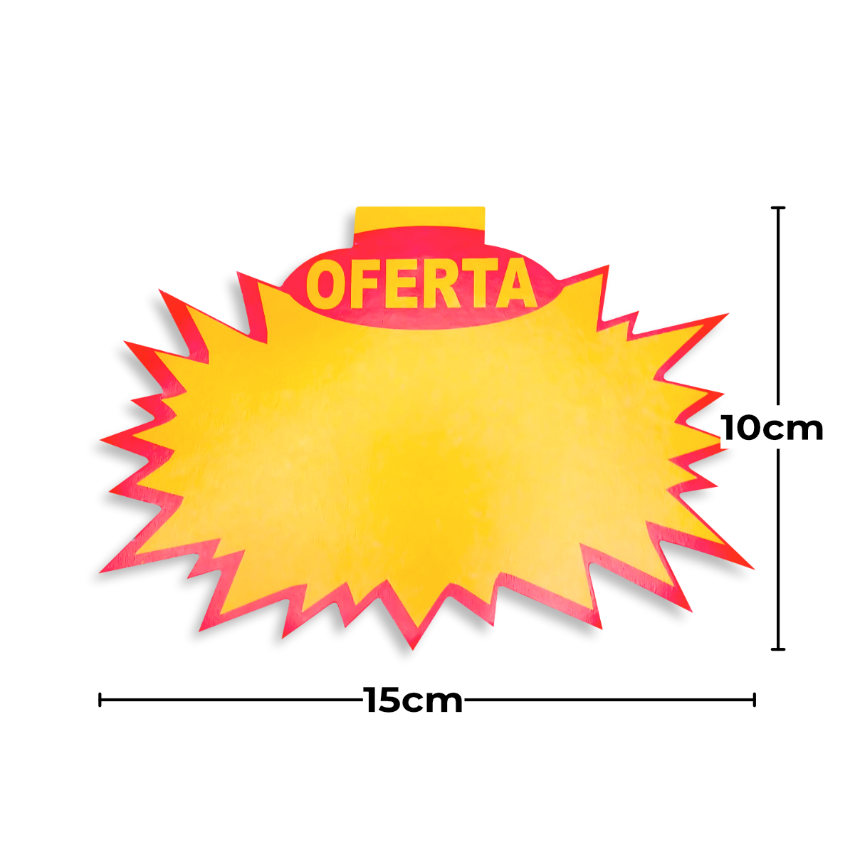 Cartazes splash de oferta práticos e chamativos, ideais para destacar promoções em mercados e lojas, em pacote com 100 unidades.